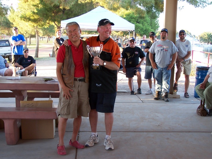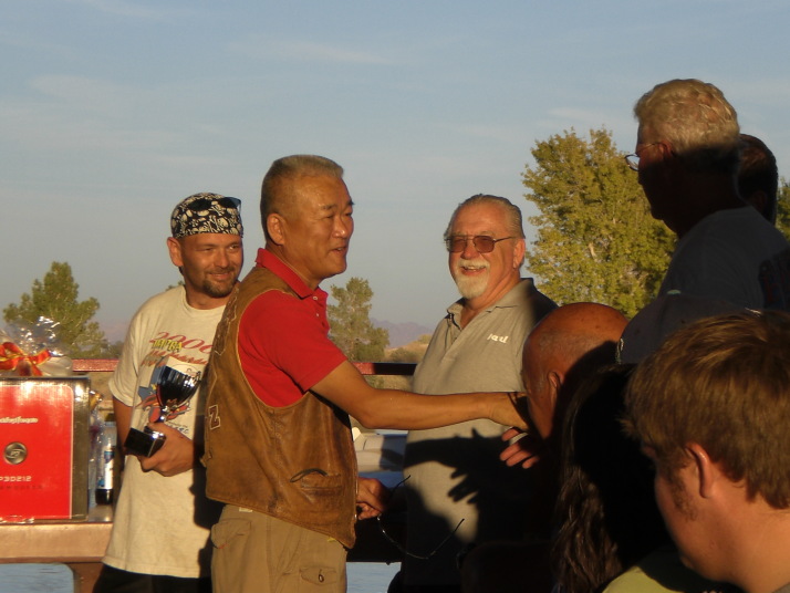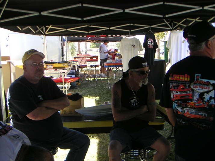 | 画像が沢山有りますのでヤッフーフォトに整理してみました興味有る方はクリックして下さい アウトリガー艇の画像特集、(制作の参考に) オサム君が撮った試合中の様子(土等日の午後と日曜日午後の分) 日本にはないクラスでクラッカーボックス集、 迫力の画像スポーツハイドロ集はGlenn Burkardさん投稿より拝借 これも同じくGlennさん投稿よりクラッシック、サンダーボートの展示とその 競技中の画像、近年出来たクラスで皆気合入れています 地元ベガスのお友達、朝食と夕食は手料理でいつも大変美味しかったです でも来年まで彼らがいるかわからないそうです... 刺青マンは地元でAH,BH横の女の子もAHクラスのボート走らせています、 サングラスの人はBHクラスの制作なんかやっています 2日間あった夜のパーティ、この費用と3日間の昼食費が参加料に含まれています、 本当に安い!最初の1艇が$35,次から1艇につき$15です スポンサーからの副賞も全員頂けます、 それにボート、プロポ、エンジン、その他豪華賞品も当たります。 これは有料のくじを買うことになりますが え〜とInsane Boatsが作ったページです綺麗ですねこのように作りたいです、 コチラにも素晴らしい画像集Scott Grissmanさん投稿分より 下の画像は私のカメラから抜粋しています、イマイチですけどね |