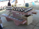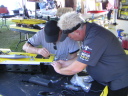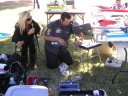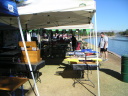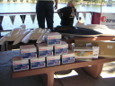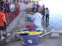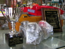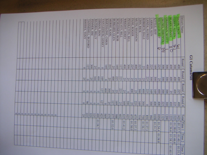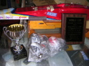 | お気に入りの画像をクリックすれば大きく見えます 出来事の内容は参戦日記を参照してください。 *動画はユ〜チューブにアップしました。ボクの友達夫婦が2台のカメラで撮ってくれました。 オサム君とマコちゃんに感謝です ! それから〜 取れたタイトルはG1-CAT(カタマラン)で5位の楯 GX1-CATで3位のカップ トップを狙った本命はボートより人間が先に走り見事にアウト!精神修行が足りませんでした。シクシク 私が写した写真です |