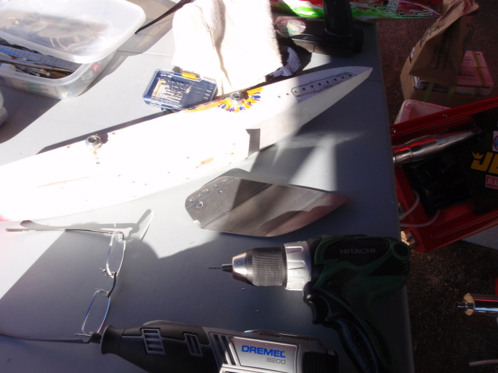 AOさんにヤスリがけの手伝いをしてもらいスポーツハイドロ艇とアウトリガー艇のターンフィインを製作することができた。ありがとうカーネルおじさん。