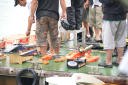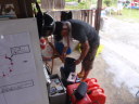 動画サイト You Tube にアップした。 9月16日日曜日 レース開始 あいにくの雨模様!!!!! 選手ミーティンブでルール等打ち合わせ、開会式、国家斉唱(HIROKOさん)、 選手宣誓(昨年のG1モノ優勝者の聖ちゃんがした)。 自動音声でラップ(周回)を知らせるシステムが午後から調子が悪くなり、従来からの手動方式に急きょ変更! 水のせいでトラぶったと思いましたが、なんと後でチェックするとなぜか端子のねじが緩んでいました。 今日、じかにハンダ付けし完璧を目指し岡山に行く準備しました。 午後から今村さんが応援でジャッジに来てくれたおかげで難を逃れました。ありがとうございました。 台風の影響で有明漁師の中島さんがレース参加を見送りましたが、途中3回も時間が空けば会場に 駆けつけてくれ回収など応援してくれた。 ボランティアで回収係の寺山さん、ビデオ係り松石さん、記録係りと周回ボタン操作係りのJGガールズさん 雨の中、本当に御苦労さまでした。感謝申し上げます。 2週間後の10月7日の『オアヤジ達のG−パワー草レース in 岡山』もみなさん参加して下さい。 私含め九州から何人か参加します。詳細は後日アップします。 入賞者は1位から順に3位まで敬称は省略しております。カップは5クラス用意、 終われば打ち上げパーティを特設のバーベキュー会場で夜が更けるまで皆で飲みました。 Hirataさん、Miharaさん&マコちゃんのカメラよりGoodショットの画像をアップできました。ありがとうございます。 表彰式 全ては撮れていませんが、やっぱり入賞したら嬉しいですね。『おめでとうございます』。4クラス緑のカップを用意しました。 オフショーアー、オープン、スパービギナー、3クラスの入賞者はお米を記念品としてお母ちゃんのもとへ。 それから福引券抽選でエンジンその他みなさまお持ち帰り帰路へ。 ご覧のとおりみんなズブヌレでした。 ごくろうさま ☆ 昼食は地元の方の手作りのかしわ飯おにぎり、お漬物と煮物をご用意しました。 『これが美味い』 ピットエリアの様子 雨がが降ってきましたので整備とか無線関係のトラブル防止の対策でたいへんでした。 ドライバースタンドの様子 みんな必死です。 もちろん選手たちもプルプルときています。 お金で買えない刺激が・・・・ レース疾走の様子 合計200枚ぐらいの画像の中からいいのを選んでみました。 HIROKOさんの国歌斉唱と共に皆で歌いました。 9月15日土曜日 オープンウォーターで走行テストです。帰りには皆小屋にR/Cボートはお泊りしております。 9月14日 ブイ設置は金曜日に2人で1日がかりでしました。正確にするには時間がかかりました。 全国大会に向けての夏の練習風の景動を画サイト You Tube にアップした。 |