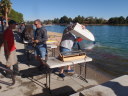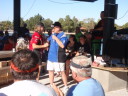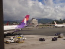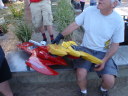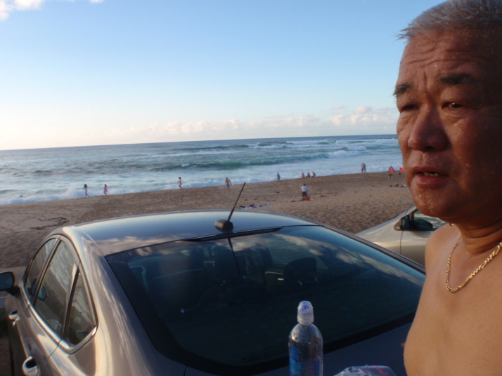 | 2013年10月19日(土曜日) 夜9時の便で福岡空港からホノルル経由でべガスに向け旅立ちました。 ホノルルには朝の10時過ぎに到着し、レンタカーを借りチャイナタウンにGo! ここの古着屋に用事があるので。 でも、いつ来ても危険な匂いプンプンしています。一人じゃ何が起こるか判らないので早めに切り上げた。 ハワイでも身の危険を感じますねあそこは・・・・・そこが魅力でもあるが。 レンタカーはコンパクトカーを予約していたが、受け付けのお姉ちゃんに私のドライバーライセンスを見せると、 彼女の旦那さんの出身地が久留米(福岡県)だそうで、無料でアップグレードした高級車を貸してくれました。 最初からラッキー@でした。 サーフィンのメッカ・ノースショアー近くの有名店『ガーリックシュリンプ』で昼食を取ったが味はイマイチ。 3時ころの遅い昼食でしたが意外と外人のお客さんなど並んでいた。あれだったらハワイで有名なあれ! ご飯の上にハンバーグがのっているの・・・・・そうロコモコの方がお勧め。 で、途中で泳げそうな所を探したが良い場所が見つからず、結局ノースショアーまで来てしまい、着いたのが4時過ぎころでした。 オアフ島の東回り海岸ベタの道をただ良いとことはないかな〜て感じでドライブ。 一人旅で無ければ早めに決定して適当な所で泳ぎ始めていたと思うけど、今回は単独ですから好きなように道を決定し冒険をしていました う〜n 沖の方で10〜15人ぐらいサーフィンしていました。さすがにここは波が高いしどうしょう・・・ 良く見ると『ノースイミング』と砂浜に立て看板あるし、 板無しで3〜5人ぐらいは浜辺から波に向かって飛び込んで泳いで遊んでいる人もいるので、 『よし!!ここで泳ぐぞ〜』と海パンに着替えたところで、家からタオル持ってくるの忘れてたのが判明。小さなタオルハンカチだけ、 まあいいか、その代わりナイロンたわしタオル有るので何とかなるでしょう。 地元の奴が『ビーケァフル(気をつけろ)』と声をかけたので、OK アムショァー と波に飛び込みました、波が高くて沖に行けません身長の3倍ぐらいの波が砕けて襲ってきます。 ウ〜ム ひとまず戻ろうっuuuuuuuuu なんと浜辺に近づくと次の波で引き戻されます。 『巨大な洗濯機でもまれる感じで』海底には打ちつけられるし、身体はグルグルと回転・・・天地が逆でももうわからない状態 あと少しで浜辺に上陸出来る(膝小僧より少し上)位置でまたもや次の波が来て人さらい・・・・ガッテム グルグル回転レシーブ あ〜ぁもうだめ『力尽きた・・・』 とその時 私に声をかけてくれた人の手が伸びてきて引き上げてくれた。 本当にあと少しで死にそうやった@ 髪の毛の隙間、耳の穴は砂が詰まっており、鼻水が滝のように流れていました。ブザマの一言。 今『ノースイミング』の意味がわかりました。 飛び込んでも普通の人では戻れませんよねてことでした。 そうこうしているうちに夕陽の時間帯になり、まだ沖ではサーフィンをやっています。 みんなは一様にこの時間帯を大事にしている感じで夕暮になっても誰も帰り支度しません、 ただボーと海を見つめてこの瞬間を楽しんでいました。 なんかい感じでしたよ、あの夕陽はまた見たい。 画像のトップは、死に掛けた際に身体の穴という穴に侵入した砂を取り除くべく、何度もシャワーを浴びたが取り除けない。その時の苦労がうまく撮れています。 ホノルルを夜10過ぎの便でラスベガス直行します。予定通り疲れたのでぐっすり朝まで寝れました。 今回はハワイアン航空で、往路ビジネスクラス、復路エコノミークラスをマイレジーのたまっていた分で つまり航空券はタダで手に入れました。たまにはいいこともあるね。 11月20日(日曜日) 朝7時過ぎにベガス空国に到着、レンタカーの手続きすませ車を選ぶ時『ここからここまでコンパクトカー』と係員に指示されると その並びに『トヨタプリウス』があり、私は思わず『ラッキーA』とつぶやいた。 こんなことはめったに有りません。 これにしますと決定し荷物を積み込みいざ出発、超ハイテク車でうまく操作できず動けません。 10分ぐらいあれやこれで動かすことができとりあえずボートを預けている『オサム君ちに』Go !!!! ピンポンと呼び鈴を鳴らし『今回もお世話になります』と8時過ぎ到着しました。 今回は事前整備に約3日間かけるスケジュールを組んでいました。これでタイトルが取れないならもう諦めようかと ラスベガスは最後の挑戦になるかもしれないので悔いが残らない時間を組みました。 今までの過去の事故後の補修とかで、たっぷり3日かかりました。準備OK!!!!!いつでもどうぞ 11月24日(木曜日) オープンウォーター(テスト走行)の日です。最初は燃料と高度の関係か?なかなか満足できないエンジンパワーです。 各ボートのにニードル調整とかやり、CAT、スポーツハイドロ艇はいい感じのセットOK、モノ艇はいまいちだがOK、 アウトリガー艇だけ調整だけではエンジン