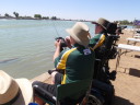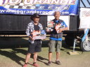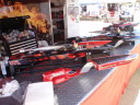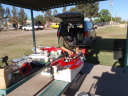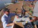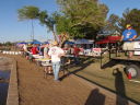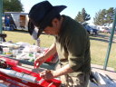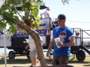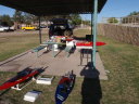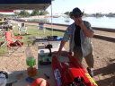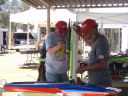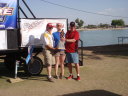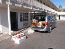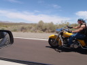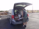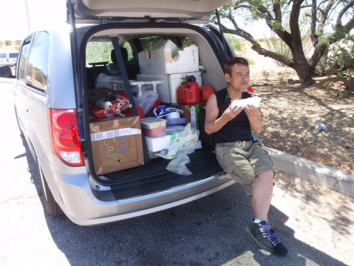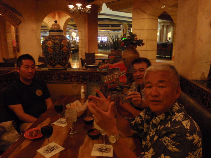 米国テキサス州エルパソレース(自閉症の募金を兼ねています)編 4月24日(水曜日)に福岡空港より空路で成田、ロサンジェルスで乗り継ぎラスベガスに到着、すでに20時間は経ちました。 ロサンジェルスの税関で私だけが、詳細検査ラインいけと指示され、あ〜なんで僕だけが??人相に問題が・・・あったかもね・☆ 当然、乗り継ぎ便べガス行きには間に合わずキャンセル待ちで次の便に乗るはめに。 外に出た岡本さん大丈夫でしょうか? 福岡から同行している『何も知らない、そしてノーイングリッシュ』の岡本さんは一人で乗り継ぎのラスベガス行の飛行機に無理やり乗せられたそうで べガス空港の手荷物受取場で『一人ぼっちで、、4時間を不安な状態で私を待つ「』たそうで・・あ〜何ってこちゃ。まっこれもいい経験で記憶に残る旅ですかね 初日からこんなハプニングですが、実は旅立ちから始まっていました。恐るべし”H”のカン違いといつもの忘れ物 福岡空港で無事、預け入れ荷物検査もOKであとは飛行機が僕たちを運ぶだけと安堵し『昼食のカレーライスとビール』飲んでカバンの中の書類を探すと 『米国の資料ファイル』が見当たりません?!!!!!!!!!レンタカーの契約書、国際運転免許証、宿泊先の予約、 べガスからエルパソまでの道順の重要チェックポイントリスト、などなど、これなしでは何一つ米国の行動はできません。有るのは」パスポートと財布。 多分自宅に置き忘れ? 岡本さんの携帯電話を借りて家にいるエブ君に「『ね〜ぇ そこに資料ファイルある?』 『これのこと?』 こたつのテーブルの上に大事なものが有りました。 行く前に教えなかった『女房が悪い!』なんて口が裂けても言えません。ゴックリ 出発まで20分を切っています。 JAL搭乗カウンターで『忘れ物の書類が有るのでFAX番号を教えてくれ~』と懇願すると 『ここにはFAXは有りません』との返事。あちゃ〜 飛行機に搭乗するの?と小娘が私に聞く『もちろんン乗る るrる!!』今更中止はできませんよね。 成田空港にFAXで送る方法を提案され、成田のFAX番号が判るまで時間がかかり、私は顔面蒼白でした。 ぎりぎりセーフで乗り込み、後は成田空港で確実に受け取ることができるかに今後の全てがかかっていました。 成田に到着、ギュ~n『ドアが開き』出るとJALのおねえちゃんが待ち構えてくれていて大熊さんと『FAX5枚』ほど受け取りました。ありがとう JAL 全部送るのはFAXでは不可能ですので、初日に必要なレンタカー契約書、国際運転免許証のコピー、モーテル6の予約控え、手書きの道順でした。 あ〜これで光が見えてきました。 後はインターネットが有ればなんとかなると思いました。ノートパソコンは持ち込んでいましたので。 成田からロサンジェルスまでの機内の様子をYouTube に揚げていますが『頭が壊れはじめてる僕たち』の様子ですのであまりお勧めできません。 初日の予定行動より税関検査で4時間押しています。 ラスベガスのレンタカー屋では白人男性が応対する順番になり、、『悪い予感』が、、、、、、 本物の国際運転免許証は有りませんので日本の運転免許所を見せ何とか・・・・最初は『コピーの国際運転免許証はダメ!』そりゃそうでしょう。 追加のドライバーを岡本さんに指定していましたので彼の国際免許証を見せているうちに、(彼は忘れ物はなかった) 担当者は日本語の勉強をマサセッツ大でしたそうで、沖縄にも1年住んでいたので『時々日本語を使い』難しいですねと言って打ち解けてきました。 しょうがないと『日本の運転免許証番号』をコンピューターに打ち込み無事にミニバンを借りることに成功。 結局彼はいい人でした。ラッキーよかっった。 アメリカでは車がないとどうしょうもないです。 最初に岡本さんに運転をしてもらい私が米国運転を助言することにした、『やっぱコピーの国際運転免許証』じゃ市内はやばいです。 べガスの友達の家に行き私の預けていたボートを3艇をミニバンに乗せ、ボートは日本から持ち込んだ2艇で合計5艇になりました。 とりあえず日が落ちる前にべガスを出てYouTube 最初の宿泊先のモーテル6いかなければ。 Go Go 〜う 260マイル走行(約410キロメートル)します。 夜の11時か12時ころにモーテル6に到着 シャワー浴びバタbbキュ〜u やっと1日が無事に終わりました。 ここはアリゾナ州フェニックスの入口です 4月25日(木曜日)今日はアリゾナ州、ニューメキシコ州を通過しテキサス州のエルパソとゆう町まで移動します。 朝は日本から持ち込んだエンジン部品の組み立て、ボートのセットアップをできるところまでし、エルパソに向け出発 本日は460マイル(740キロメートル)移動しなくてはいけません。適当に運転を交代し、適当に飯を食い、どこまでも直線の道を東の方に走ります。 だいたい最高80マイル(130キロ)のスピードで車を走らせます。小型の砂嵐も何カ所か通過して、サボテンとか西部劇の風景も現れてきた。 途中休憩に寄った店で 岡本さんは日本から持ってき