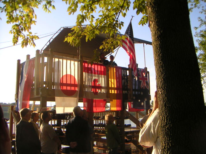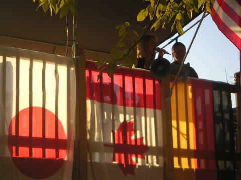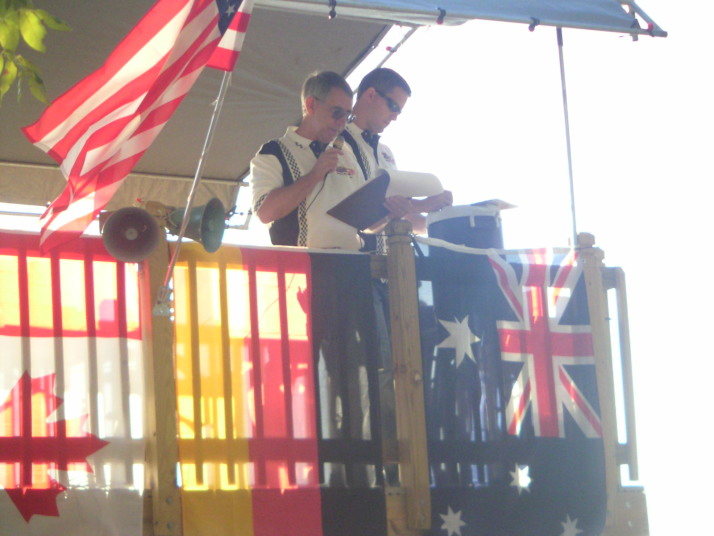 | 昨晩のバカ騒ぎが嘘のように全員夜明け前に、ごそごそと 起きました、顔洗い、オフィスで簡素な朝食モグモグ みんな気合は入ってます、私の車は会場に放置していますので マイケルの車に便乗 Go〜 さそく会場に着いたらマイケルたちのトレーラーからテーブル、自分のボートだし 準備、すこし寒い そうこうしてると場内放送で選手はスタンド前に集まるよう指示があり 集まると、そこにはセレイナ市長(女性)ほか来賓の方が来ており、開会式が始まり 「良い街ですから観光にも来て下さい」とか一通りの挨拶がありました セレイナは確かに良い田舎 コントロールスタンド最上部(高さ2.5メートルぐらい)に綺麗な金髪のお姉ちゃん 見っけ! 何の係りかな? 場内アナウンサーが 英語でペラペラ? そのうち皆神妙にし、先ほどの女性が少し前に出てマイク持ちました アメリカ合衆国国歌の斉唱です 伴奏なしで 超カッコイイです やっと太陽が射し始めたばかりの静寂な会場に う〜nアメリカ! 試合前に聞くと 『さー戦うぞ〜u』 て気になりますね 君が代と違い 「"H"! ユアーカントリーソング...」英語でペラペラ?とアナウンサーの声 うxn えっ 俺にオーダー・・・ 私は皆の後ろの方にいましたのでアメリカ人の間をすり抜け 階段をトントンと駆け上がり 上から見下ろすと結構高い なんでこんな状況になるの? まっ良いかココで歌っても日本人はおらんから 得意の"金山港に帰れ"でも歌えばなんて 思いませんけどね うまく歌えば金髪のお姉ちゃんと仲良くなれるきっかけにと思いましたが 結果は効果なし ところで俺、歌えるのかな? 君が代 『じゃ〜リルビット』と指でショートの合図 きみがはよおわ〜 ちよにいいや〜ちよに さざれ いしの〜 いわおとな〜りて〜 こけの〜むす〜ぅま〜あぁ〜で〜 うっ最後まで歌えた! なんてこった 自分ながらすごい 今思えば、アメリカ人が伴奏なしで聞いた君が代 どんな感じだったんだろう とりあえずJeffは感激したとか言っていましたが お世辞臭い? ま〜そんなこんなで試合前から大変でした で 良いですね 日本の国旗もちゃんと掲げてあり 最高の舞台 何で? かな 日本では国歌とか日の丸を反対する人が..ようわからんちゃ!. 確かに今の政治、行政なんか、危機感がないが どこの国行っても 時としては日の丸の旗は要るよね レース、オリンピック、エベレスト山頂 etc 当たりまえじゃないかな? お前はどこの人と言いたくなりませんか そう言えば こんなことありました、昔々 息子が小さい時一緒に、博多港で護衛艦の内部見学できる機会ありました 行くと、変なやからが10人ぐらいでマイクで 『人殺し〜』とか女性が叫んでいいました そうか この人たちは人殺し集団 なんか??? 自衛官は無抵抗です 何言われても可哀想です 見学者は小さなお子さん連れも多く、 良くないですね そこで怒り爆発! ボカ〜n 『おい 子供がいる前でなんば言よるとか!』てめ〜止めろ と睨みつけた せっかくの日曜日が台無し、そのうちリーダー格の男がやって来て選手交代 私と言葉のバトル 所詮、話して判る相手ではないと感じていましたが、コチラも言いたいこと山盛り 息子は倉庫の陰かに隠れて、私の方をジーット心配そうに見ていました、多分5才位の時 今となれば良い思い出 戦争は起こらんよう願うけど、ちょっとね。 後日、こいつはTVに出ていました又何かの反対運動代表として 笑い よう がんばっとる ホトホト感心しました 話が大きくそれました ごめん さて第一戦目 皆は助手が誰かもう決めています レースは助手がとても重要です どうかしたら助手が言葉で巧みに運転してるようなもの この感じわかる? 私は、スケジュールの空いてる人にそのつど頼むしか有りません 前日、3日分の予定スケジュールには選手名などか記載されており 相談は出来ますが 腕の良い人は予約済みが多いです 最初はJeffとかがやってくれましたが、試合進むと壊れた所のメンテなんかで自分の事で いっぱいになり、人のことかまうこと出来なくなります、特にエントリーの数多いと そのうち 『ヒロキ! ユーニード ピットマン?』と愛煙家でヒゲ伸ばした Jeffの子分格のロニー君 が声をかけてくれるようになり、そのうちロニーのピットマンも私がするように なりました、彼はのドライビングテクニックは下手糞です 第一、プロポの持つ姿勢がなっとらん!、 なんかしらん前後左右、腕が伸びたり縮んだり カラダ全体でボートコントロールしています、いけませんね、 『何でそんなにふらふらしとるん?』 と日本人からアメリカ人が 日勤教育受けてます ちゃんとせんかい! ボデーはホールド 顔はだけ動かし目だけでボートを追う 彼はR/Cボートレースにはよく来ています 好きなんですねレース がしかし、彼はレース中よく転覆しています、真のアンラッキーボーイです そのアンラッキーが私にもじわじわと汚染され始めている事に初日では気が付きませんでした モノ艇だけ距離が離れると一瞬スロットルが落ちる感じ、