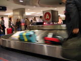 到着荷物受け取りターンテーブルで預け入れ荷物を取り出したところ