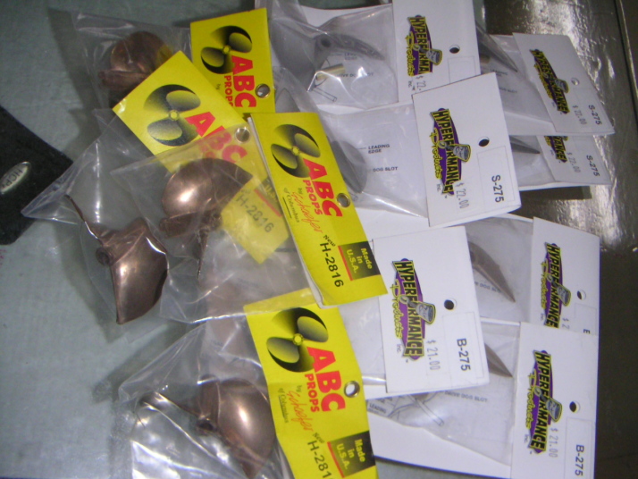 | ベガスから持ち帰りました、ABC-H2816のペラはリガー艇用@4200円 モノ艇用プレッサーのペラ275@4000円ステン@4200円。モデルチェンジしたスピードマスター製ガススティンガー9990円 キャブインシュレーターブロック(アルミ製)@5800円、ドライブユニット@5000円@5500円、その他色々 2008年10月31日 |