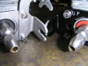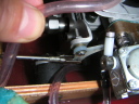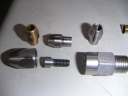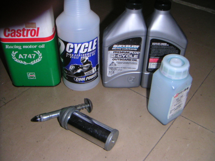 | ついでに、2サイクルオイル画像ありますので、現在私が使用してるのは、 実艇でおなじみマーキュリー社のQUICKSILVER PREMIUM PLUSとゆう純正オイル カストロールA747は、使用後のベタツキがHull内に残り嫌い、 それと第一の理由は価格が高いこと、¥3900、3缶使って離縁しました。 日本じゃ〜 レーシングオイルは高いのが当たり前、 これは許せません 化学合成オイルのクールパワー、ブルーは1ボトル$6ぐらいでお手ごろなんですけど ピストンヘッドにカーボン付きやすい 1年半使用パフォーマンスはまずまず このオイルはアルコールともブレンドできます、グローにも使える化学合成オイル。 Jeff君も愛用してるQUICKSILVER PREMIUM PLUSは、カーボンの付着がほとんどないので大好き、 ご購入の際はPLUSの文字入ってるやつですよ これなら国内販売もしていますので、お友達と1箱注文し分けるといいと思います、 私は船便で運んだけど経費入れると一緒。安くて最高のパフォーマンス! サラサラのオイルだけど。化学合成オイルだけが全てではありませんよ。安くてGood 混合比は8oz/Gallon 1:15~16でやっています。これが一般的、 クイックドローエンジンの様に10oz/GallonでオイルはホンダHP2指定とか色々あるみたいですが,... エンジン痛めるのは、クランク内部の水抜き不足、冷却水不足が一番かな。 ちなみに昔ヘリの時は、ヤマハオートルーブ使用していた、ボートみたいに18000rpm近く回さんし。 それとガソリンはレギュラーでOKですよ、ハイオクも1年半使用したが効果不明、もったいない。 *私はヘッダーフランジの冷却水の回路は画像のように変えています* *ワイヤージョイント*は2種類のタイプあり、私はドライブの構造により使い分けします CAT,Mono,艇なんか現場の状況でペラシャフトのアングル、 また高さ調整が必要なボートにはスクェアー(四角い)やつ リガーなんか、一度決めればOKなやつはコレット(丸いやつ)、 もちろんスクェアータイプにはスラストワッシャが必要です |